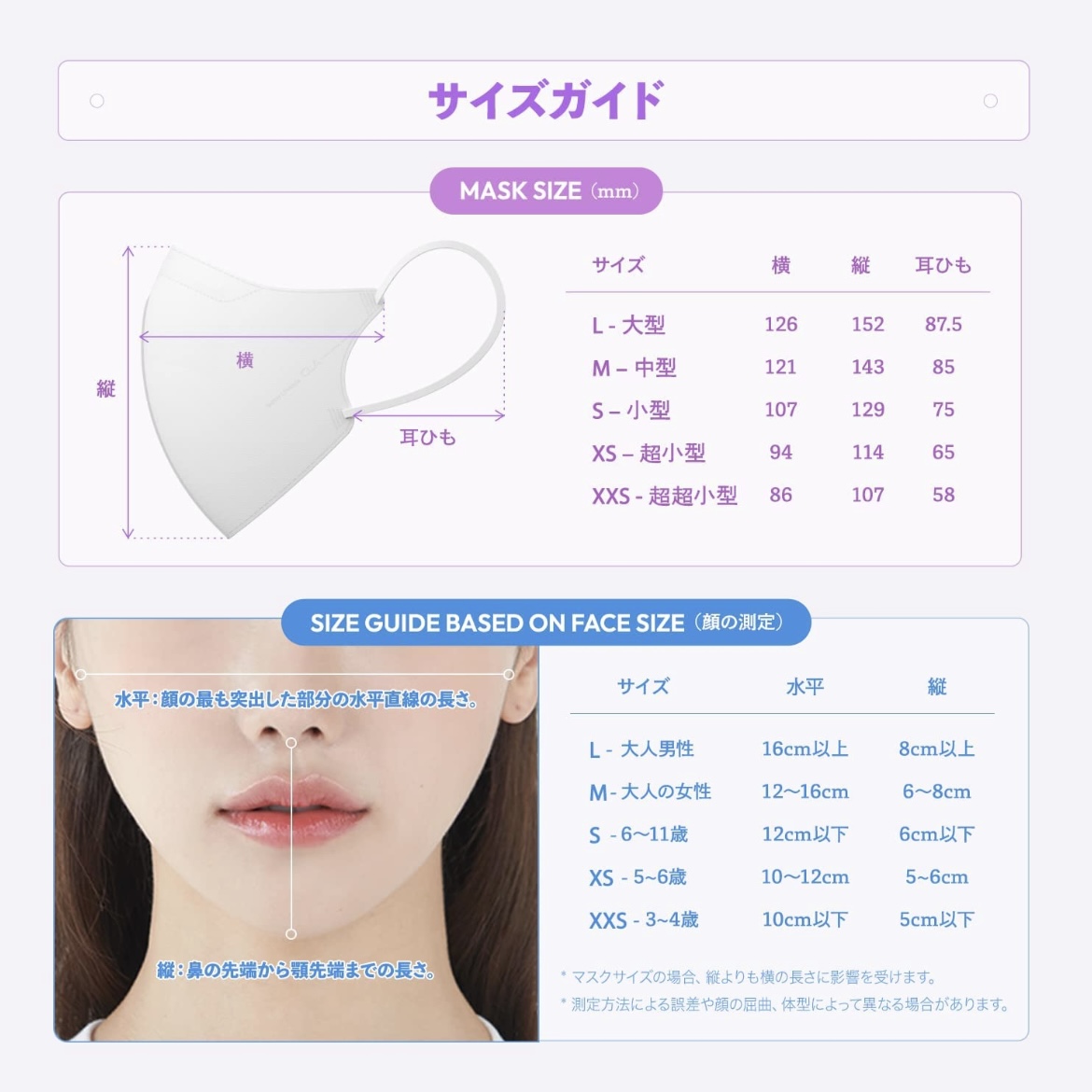 マスクのサイズは普通よりも大きめになっています!