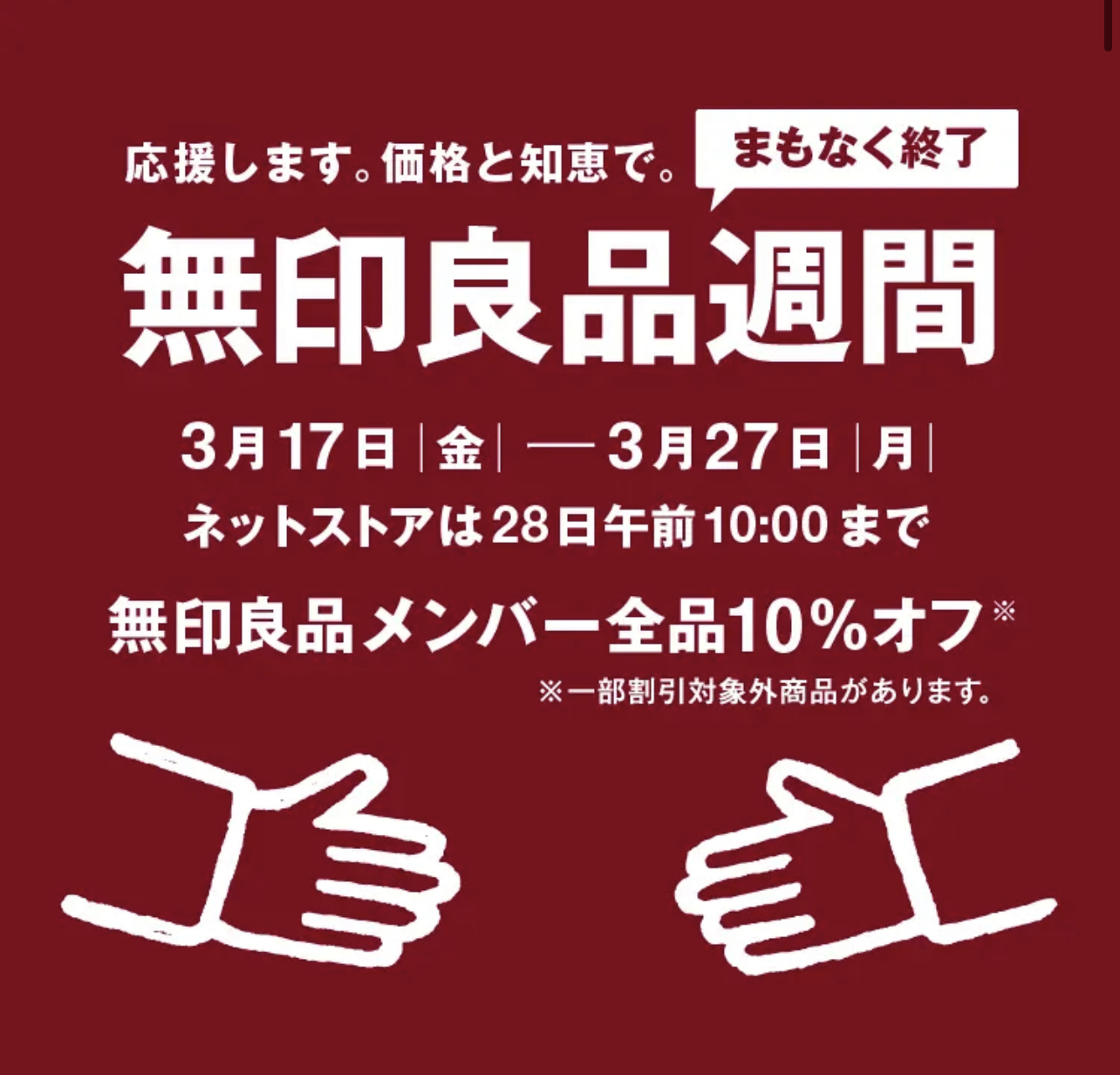 無印良品メンバー全品10%オフの