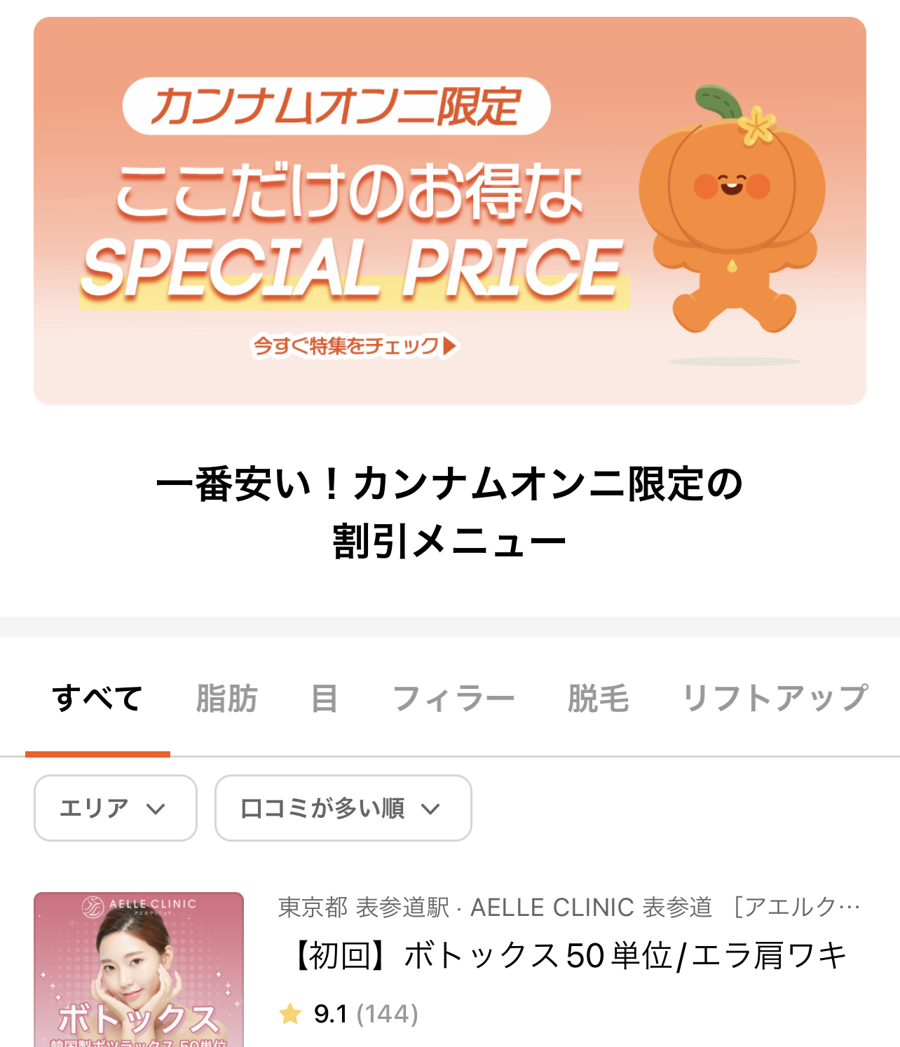 特別価格で施術が受けられる