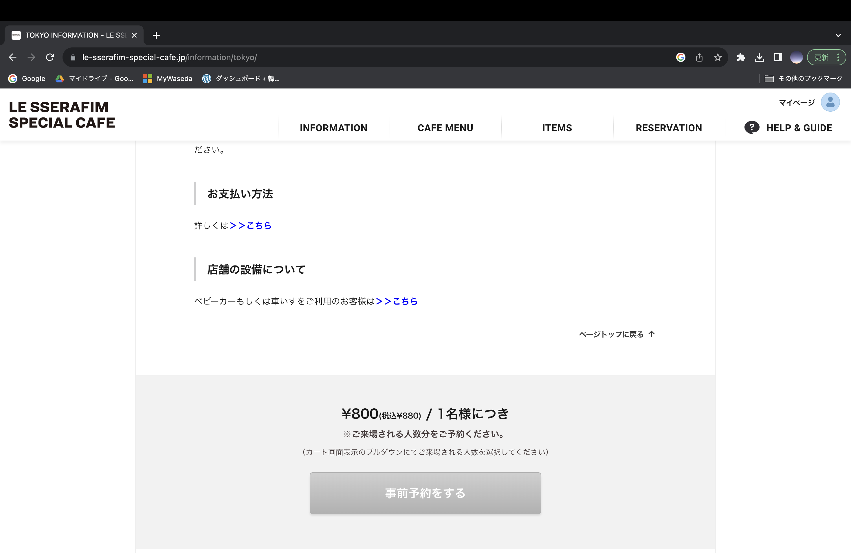 「事前予約をする」をクリックします!