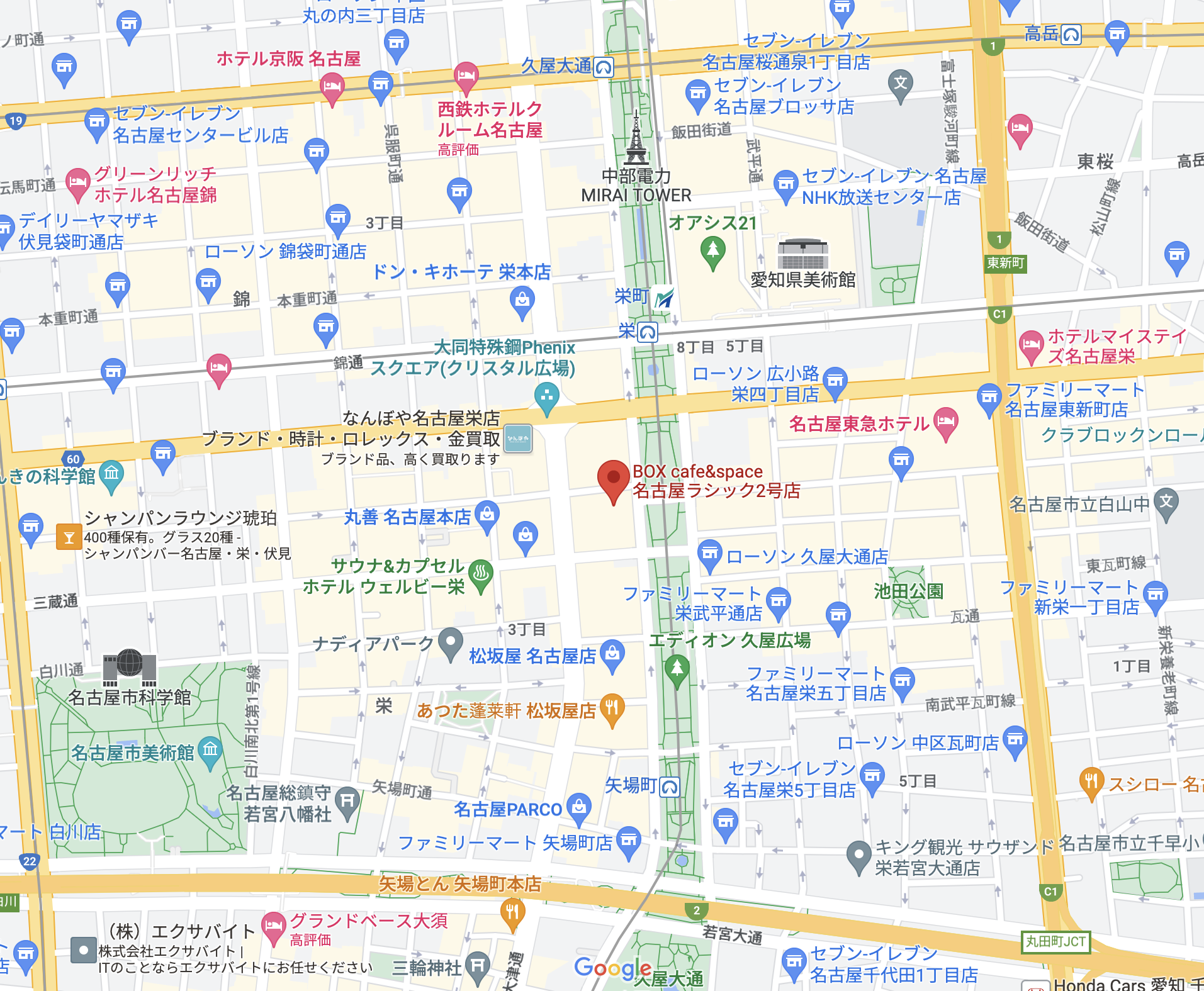 名古屋市営地下鉄「栄駅」16番出口より徒歩2分